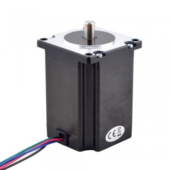 Este motor paso a paso Nema 23 de eje corto con eje de 13,5 mm de longitud, tamaño del motor 57x57x76 mm. Tiene 4 cables, cada fase consume 2,9 A, con un par de retención de 1,89 Nm (267,65oz.in).