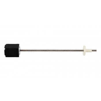Motor paso a paso Nema 8 de 30 mm, 1,8 grados y 0,24 A, con tornillo de avance de 3,5 mm de diámetro, 150 mm de longitud y tuerca POM. El recorrido lineal es de 0,6096 mm por revolución.