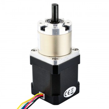 Este motor paso a paso Unipolar Nema 17 con cuerpo de 48 mm y corriente nominal de 1,68 A, integra una Reductor planetario de relación de transmisión de 13,73:1.